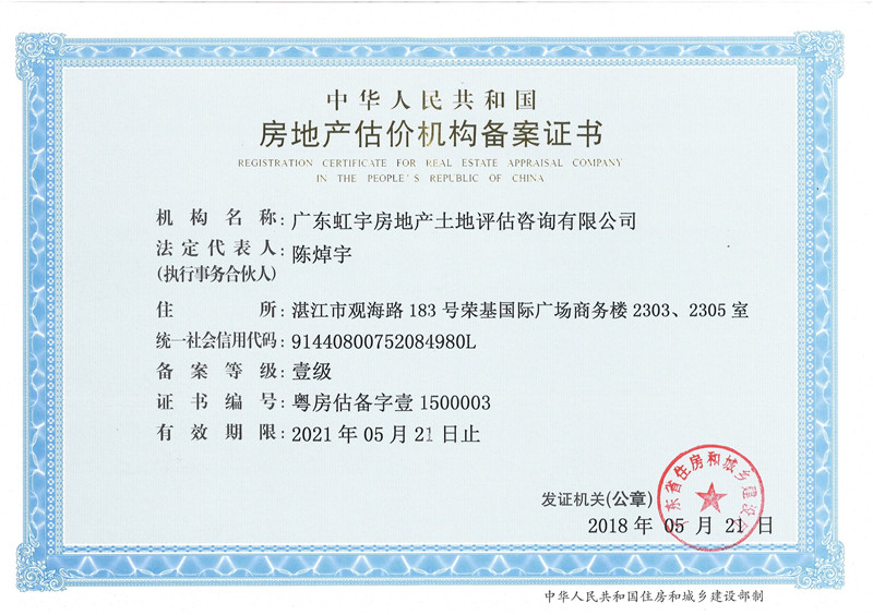 中華人民共和國房地產(chǎn)估價(jià)機(jī)構(gòu)備案證書